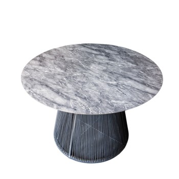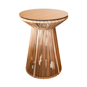 Silla versátil y artesanal. Su estructura metálica ligera se complementa con un tejido trenzado en cuerda sintética, que aporta textura, frescura y comodidad. Ideal para interiores y exteriores. Perfecta para comedores, terrazas o espacios de descanso, aportando un estilo natural y contemporáneo. Disponible en diferentes materiales y colores.