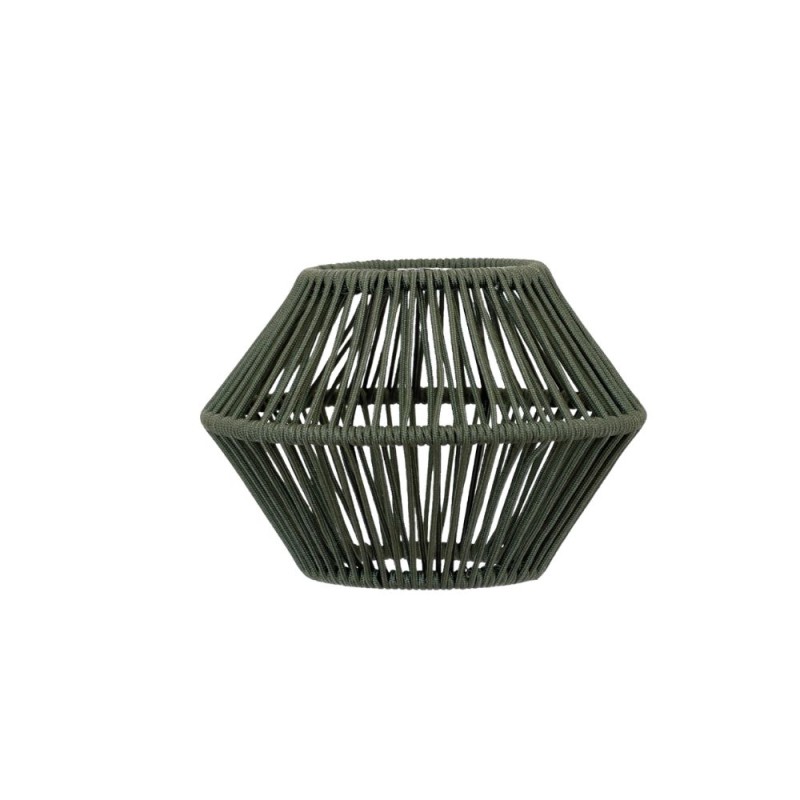 Lámpara decorativa de estilo contemporáneo con diseño geométrico y tejido artesanal que aporta calidez y ligereza visual al espacio. Su estructura está conformada por líneas verticales que crean un juego de sombras y transparencias. Disponible en diferentes colores y materiales, adaptable a distintos estilos y proyectos decorativos.