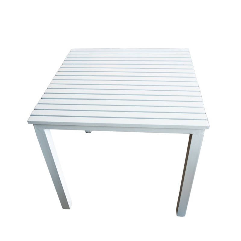 Mesa que destaca por su diseño limpio y funcional, perfecta para ambientes modernos y luminosos. Fabricada con estructura y cubierta de aluminio, ofrece resistencia, ligereza y fácil mantenimiento, ideal para uso tanto interior como exterior. Disponible en diferentes colores.