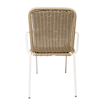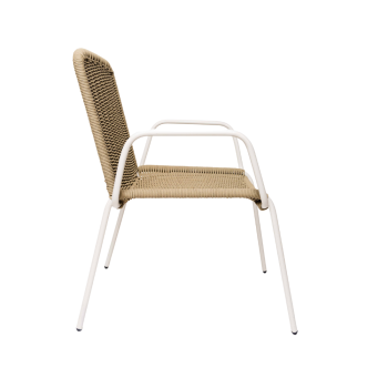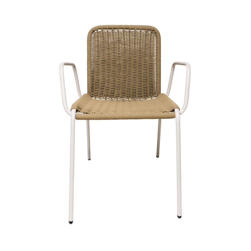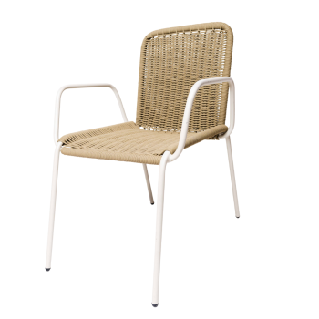 Silla que combina comodidad, durabilidad y estilo natural. Su estructura metálica brinda estabilidad, mientras que el tejido aporta frescura y elegancia. Los descansabrazos con detalles de madera añaden un toque cálido y sofisticado, convirtiéndola en una pieza ideal para terrazas, comedores o semi exteriores. Disponible en diferentes materiales y colores.