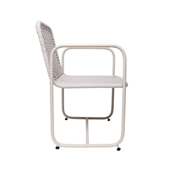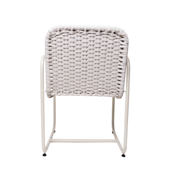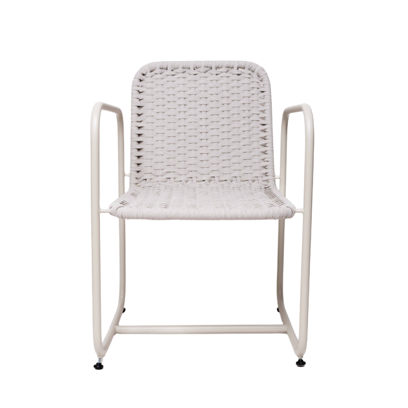 Silla de diseño moderno y estructurado, ideal para espacios contemporáneos. Su estructura metálica ofrece firmeza y ligereza visual, mientras que el tejido trenzado aporta textura, comodidad y un estilo artesanal minimalista. Perfecta para interiores y exteriores. Disponible en diferentes colores.