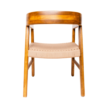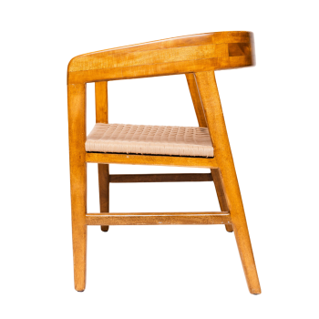 Silla que combina artesanía, elegancia y funcionalidad en un diseño cálido y atemporal. Su estructura de madera natural aporta solidez y un acabado refinado, mientras que el asiento tejido añade textura, confort y un toque artesanal. Su forma curva con respaldo envolvente ofrece una experiencia cómoda y estilizada, ideal para comedores, terrazas techadas o espacios interiores con estética natural y moderna. Disponible en diferentes colores.