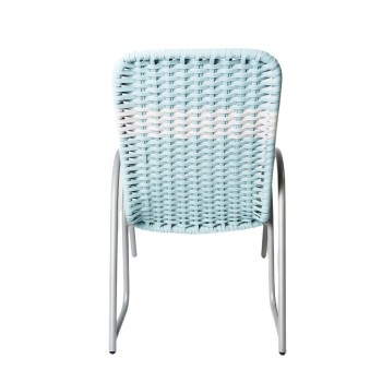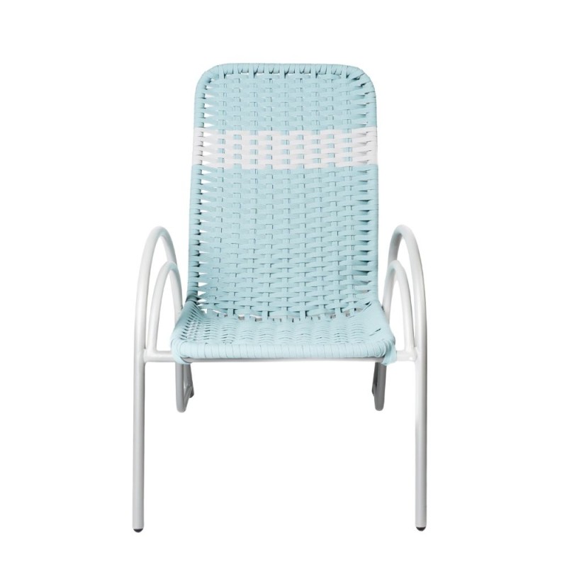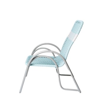 Silla con diseño retro y comodidad contemporánea en una pieza ligera y funcional. Su estructura metálica ofrece estabilidad y durabilidad, mientras que el tejido trenzado aporta frescura, flexibilidad y un toque de color relajante. El diseño curvo de sus descansabrazos y respaldo envolvente, la hace ideal para espacios exteriores como terrazas, jardines o balcones. Disponible en diferentes materiales y colores.